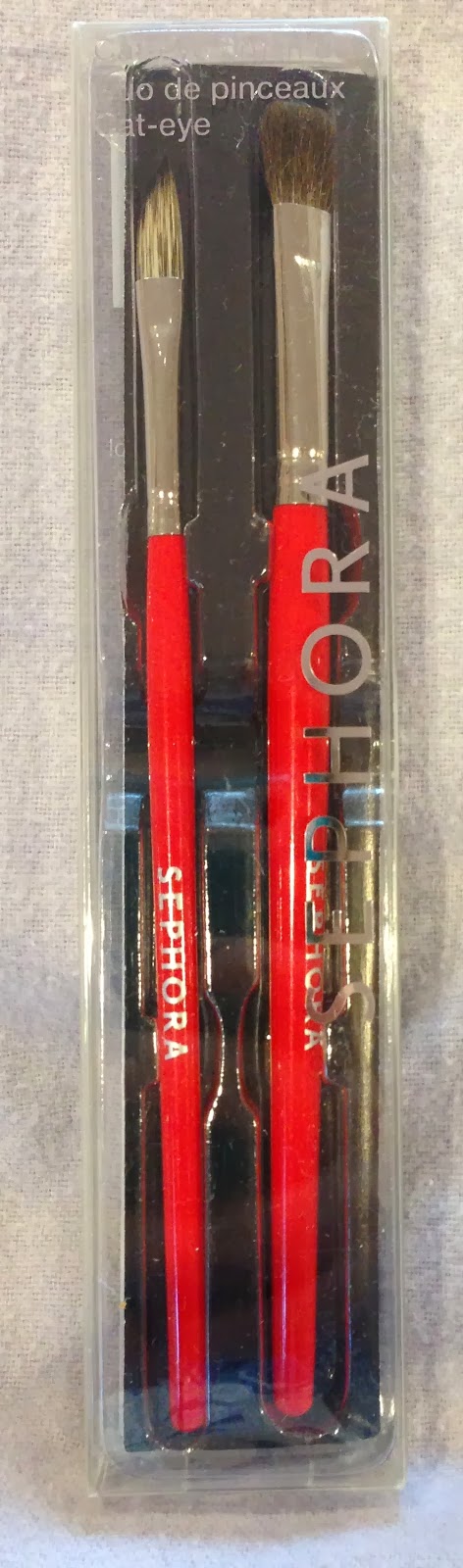 I use the left one to do a cut-crease (or to define my crease) and I use the right one on my outer V to blend out any colors! the right brush which is said to be an all over shader brush is a bigger version of my Stila #5 brush. The left brush says it is a cat-eye eyeliner brush but I find that it is more useful for defining the eye because of the brush length!